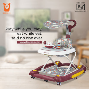 · 2-in-1 Dining Tray Cum Fun Toys Tray: Leotoon 2-in-1 Celeste Walker comes with a tray with in-built Cute Toys & Fun Music for your baby’s play time. Entertain baby with fun developmental toys for motor skill development. When they get hungry, detach the tray to convert it into a Dining Tray and feed them with their favourite food.