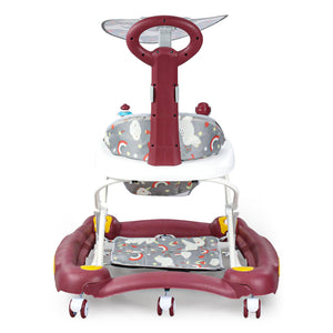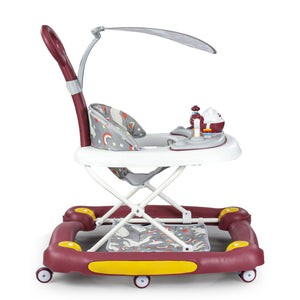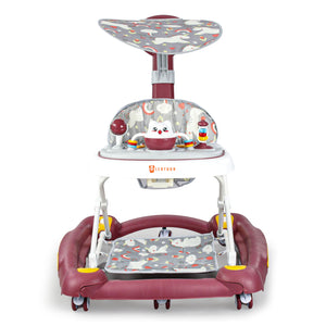 Leotoon 2-in-1 Celeste Baby Walker Cum Rocker | 3 Level Height | Musical Tray | With Rocking | Parental Handle | Sunshade | Foot Mat | Anti-Fall | Anti-Skid | 8 Mute Wheels | Wide Base | Safe | BIS Certified | (Brown) (6-24 Months)