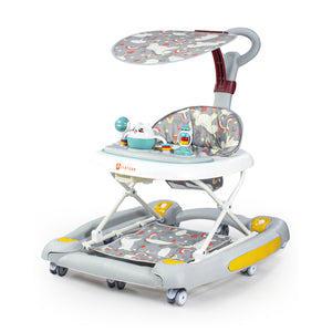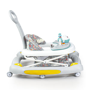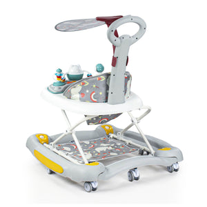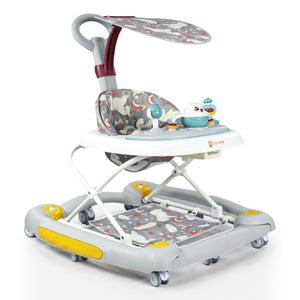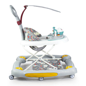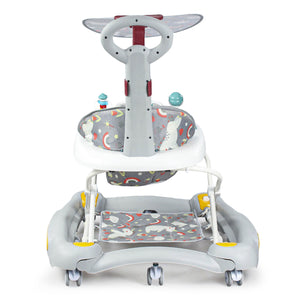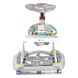 Leotoon 2-in-1 Celeste Baby Walker Cum Rocker | 3 Level Height | Musical Tray | With Rocking | Parental Handle | Sunshade | Foot Mat | Anti-Fall | Anti-Skid | 8 Mute Wheels | Wide Base | Safe | BIS Certified | (Grey) (6-24 Months)