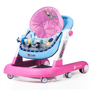 Let your little one take their first steps with the help of Blossom, Bubbles, and Buttercup! The Powerpuff Girls Baby Walker is designed to keep your baby active, entertained, and safe while exploring their world. Bring home this walking mate for your child and let them enjoy their first steps. Leotoon Licensed Powerpuff Girls 2-in-1 Baby Walker is Easy to Set Up and Portable for storage. Its Multi-Directional 4 Wheels offer freedom of movement and Wide Base provides Superior Support and Stability. It is beautifully decorated with Safest (Class 1) LED Multi-Colour Lights. It has 3 Level of Height Adjustment Positions to grow with your child thus keep your child at the right height as they grow. It can easily be converted from an Activity Walker to a Sitting Walker. The walker has 2 Speed Control Mode-Fast & Slow. Back Wheel Locking function makes it more safe and also quite easy when the baby is dining. 2 Anti-Fall Stoppers ensure that then is no accidental fall. This baby walker is designed to make your little one's first steps safe and memorable. As baby reaches and grasps toys, Hand-Eye Coordination is enhanced. This walker will also help to develop your little one's motor skills. Great for gift-giving, baby registry and baby showers. It's recommended to limit walker use to short periods, around 15-20 minutes, to prevent overreliance.