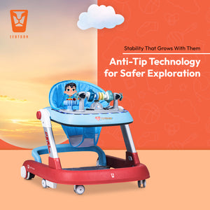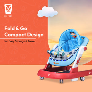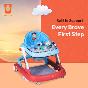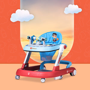 Transform your little hero’s first steps into an intergalactic adventure with the Leotoon Licensed Superman 2-in-1 Baby Walker! Give your little superhero the power to explore! The Superman Baby Walker is the perfect companion for your baby's first steps. Designed with iconic Superman graphics and vibrant colours, this walker brings fun, safety, and comfort all in one heroic package. The Leotoon Licensed Superman 2-in-1 Baby Walker is designed to keep your baby active, entertained, and safe while exploring their world. Leotoon Licensed Superman 2-in-1 Baby Walker is Easy to Set Up and Portable for storage. Its Multi-Directional 4 Wheels offer freedom of movement and Wide Base provides Superior Support and Stability. It is beautifully decorated with Safest (Class 1) LED Multi-Colour Lights. It has 3 Level of Height Adjustment Positions to grow with your child thus keep your child at the right height as they grow. It can easily be converted from an Activity Walker to a Sitting Walker. The walker has 2 Speed Control Mode-Fast & Slow. Back Wheel Locking function makes it more safe and also quite easy when the baby is dining. 2 Anti-Fall Stoppers ensure that then is no accidental fall. This baby walker is designed to make your little one's first steps safe and memorable. As baby reaches and grasps toys, Hand-Eye Coordination is enhanced. This walker will also help to develop your little one's motor skills. Great for gift-giving, baby registry and baby showers. It's recommended to limit walker use to short periods, around 15-20 minutes, to prevent over-reliance.