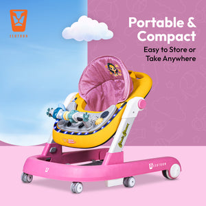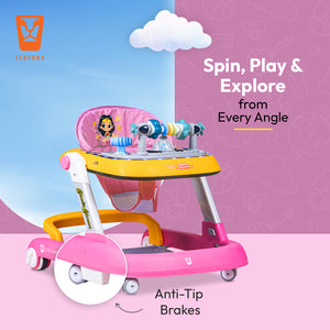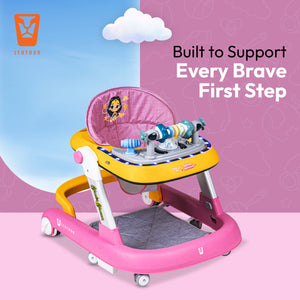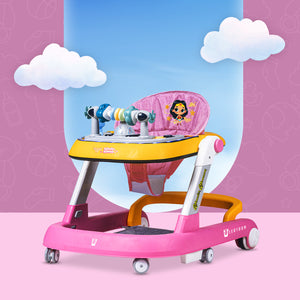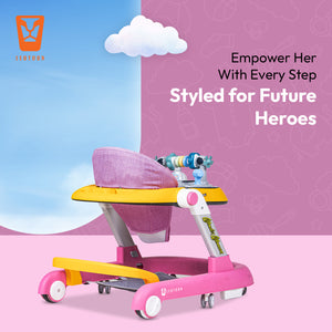 Transform your little hero’s first steps into an intergalactic adventure with the Leotoon Licensed Wonder Woman 2-in-1 Baby Walker! Inspired by the iconic DC Series, this walker features vibrant Wonder Woman-themed decals which make your baby feel power of Wields the Lasso of Truth, indestructible Bracelets of Submission and a tiara that doubles as a boomerang. The Leotoon Licensed Wonder Woman 2-in-1 Baby Walker is designed to keep your baby active, entertained, and safe while exploring their world. Leotoon Licensed Wonder Woman 2-in-1 Baby Walker is Easy to Set Up and Portable for storage. Its Multi-Directional 4 Wheels offer freedom of movement and Wide Base provides Superior Support and Stability. It is beautifully decorated with Safest (Class 1) LED Multi-Colour Lights. It has 3 Level of Height Adjustment Positions to grow with your child thus keep your child at the right height as they grow. It can easily be converted from an Activity Walker to a Sitting Walker. The walker has 2 Speed Control Mode-Fast & Slow. Back Wheel Locking function makes it more safe and also quite easy when the baby is dining. 2 Anti-Fall Stoppers ensure that then is no accidental fall. This baby walker is designed to make your little one's first steps safe and memorable. As baby reaches and grasps toys, Hand-Eye Coordination is enhanced. This walker will also help to develop your little one's motor skills. Great for gift-giving, baby registry and baby showers. It's recommended to limit walker use to short periods, around 15-20 minutes, to prevent over-reliance.
