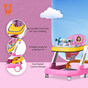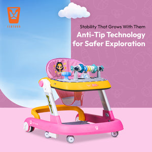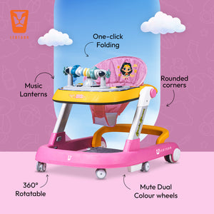 Leotoon 2-in-1 Licensed Wonder Woman Walker | 2 Level Adjustable Height | Musical Tray | Infant Activity Walker | 4 Multi-Directional Mute Wheels | LED Decorated | Foldable Design | Foot Mat | Anti Fall | Speed Control | BIS | (Pink) (6-24 Months)
