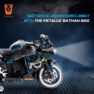 Leotoon Licensed Batman Bike | 12V/5AH Battery | 12V/15000 RPM Motor | Hand Accelerator | USB/MP3 Interface | Educational Rhymes | LED Light | English Music | BIS Certified | (Metallic Silver) (3-8 Years)