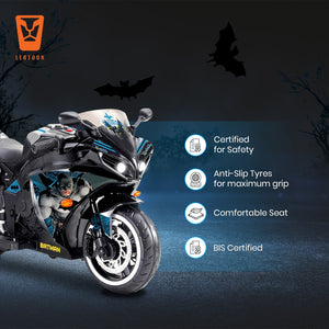 Unleash your child’s inner superhero with the Batman Kids' Ride-On Bike! Designed for young fans of the Caped Crusader, this battery-powered ride-on bike is perfect for thrilling outdoor adventures and imaginative play. It is specially designed to keep your baby Safe and Comfortable while they play. It is Easy to Set Up and has 2 sturdy Wheels along with attached Training Wheel for more Safety, Balance, Support and Stability. Its Robust Frame is designed to handle bumps and rough terrain, providing stability and safety for young riders. The Leotoon Batman Licensed Bike combines Safety, Fun, and Realism, making it the perfect choice for young adventurers. Its Sturdy Build, Powerful Motor, and User-Friendly Design ensure that kids can enjoy hours of outdoor excitement while parents have peace of mind knowing their children are riding safely. Rev up your child’s imagination with the Kids Batman Iconic Battery Ride-On Bike! Designed to look just like a real Batman motorcycle, this ride-on bike combines thrilling playtime with educational fun. Perfect for young adventurers aged 3-7 Years, this battery-operated bike is packed with features that ensure both excitement and safety. Give your child the gift of adventure with the Leotoon Batman Bike! This ride-on bike is more than just a toy; it’s an experience. Whether patrolling the backyard or cruising the park, the Kids Batman Bike offers endless adventures. It’s the perfect gift for birthdays, holidays, or any special occasion, providing hours of active fun and cherished memories.