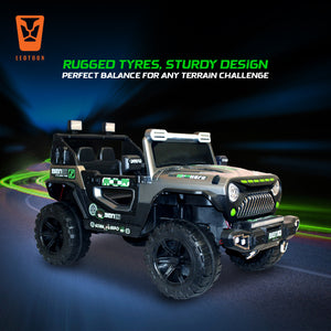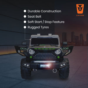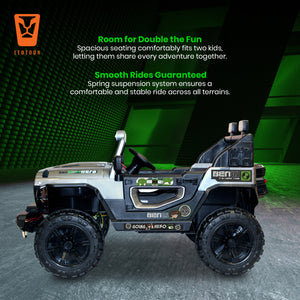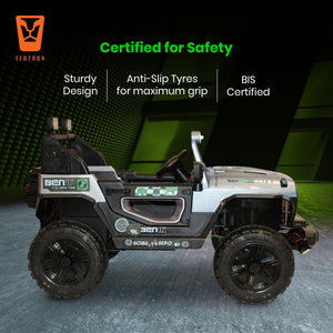 Leotoon Licensed BEN10 Terrain SUV | 2B 6V/5AH | 4M 12V/16000 RPM | 2.4 GHz Remote | USB/MP3 | 2 Seater | Rocking | Windshield Dancing LED | Bumper With LED | BIS Certified | (Metallic Grey) (3-10 Years)