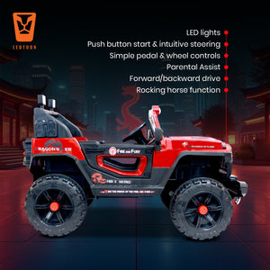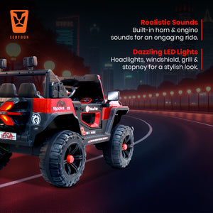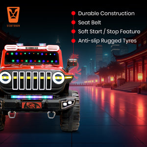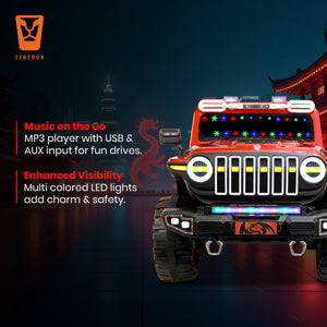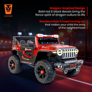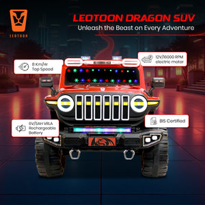 Leotoon Dragon SUV | 2B 6V/5AH | 4M 12V/16000 RPM | 2.4 GHz Remote | USB/MP3 | 2 Seater | Rocking | Windshield Dancing LED | Bumper With LED | BIS Certified | (Metallic Red) (3-10 Years)
