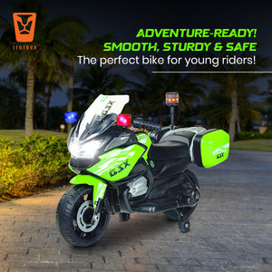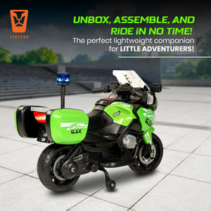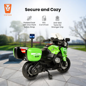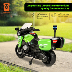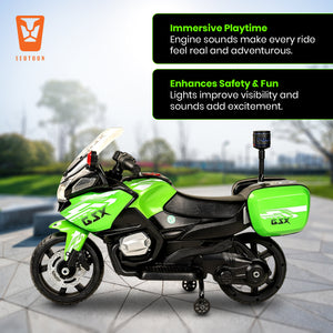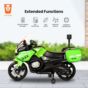 Leotoon GSX 2W Kids Bike | 6V/5AH Battery | 6V/16000 RPM Motor | Foot Accelerator | USB/MP3 Interface | Educational Rhymes | LED Light | English Music | BIS Certified | (Green) (3-5 Years)