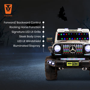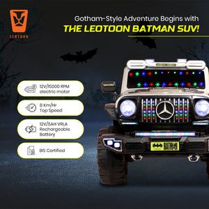 Leotoon Licensed Batman SUV | 2B 6V/5AH | 4M 12V/16000 RPM | 2.4 GHz Remote | USB/MP3 | 2 Seater | Rocking | Windshield Dancing LED | Bumper With LED | BIS Certified | (Metallic Grey) (3-10 Years)
