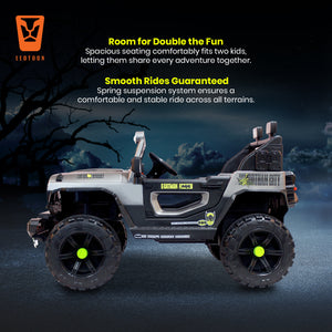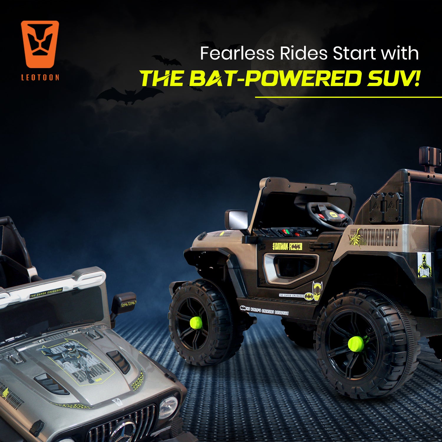 · Official Batman Design: Leotoon Licensed Batman SUV features Sleek black body with iconic Batman logos and graphics for an authentic superhero feel. It will make your child the envy of the neighbourhood and have an alter ego for every occasion. It offers an exciting and authentic riding experience. It features a Spacious Seat for Two Kids to sit and Spring Suspension System for a Smooth and Comfortable ride on various surfaces.