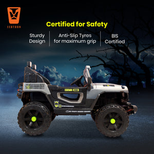 · Safety Features: Leotoon Licensed Batman SUV is equipped with a Seat Belt, Durable Construction, and a Soft Start/Stop Feature to ensure a Safe and Comfortable Ride. It is constructed with High-Quality, Non-Toxic materials, to withstand the rigours of outdoor play. Anti-Slip Tires ensure Maximum Grip on various surfaces. The Sturdy Design ensures Stability, while the Wide, Rugged Tires provide Excellent Traction on various surfaces. Leotoon Licensed Batman SUV is BIS Certified for complete Safety and Security of your baby.