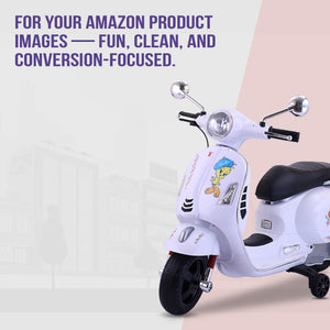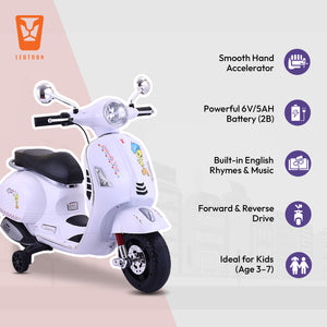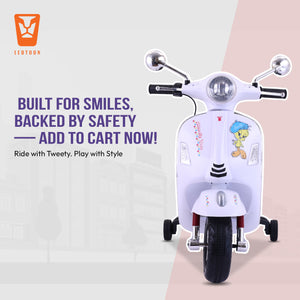 Leotoon Licensed Looney Tunes Scooter | 2B (6V/5AH) Battery | 2M (12V/18000 RPM) Motor | Hand Accelerator | USB/MP3 Interface | LED Light | English Rhymes & Music | BIS Certified | (White) (3-7 Years)