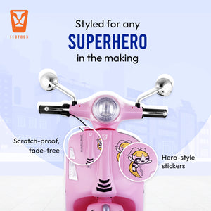 Leotoon Licensed Powerpuff Girls Scooter | 2B (6V/5AH) Battery | 2M (12V/18000 RPM) Motor | Hand Accelerator | USB/MP3 Interface | LED Light | English Rhymes & Music | BIS Certified | (Pink) (3-7 Years)