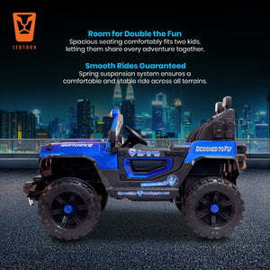 · Official Superman Design: Leotoon Licensed Superman SUV features Bold Superman-themed graphics, official logos, and a sleek SUV body for an epic ride. It will make your child the envy of the neighbourhood and have an alter ego for every occasion. It offers an exciting and authentic riding experience. It features a Spacious Seat for Two Kids to sit and Spring Suspension System for a Smooth and Comfortable ride on various surfaces.