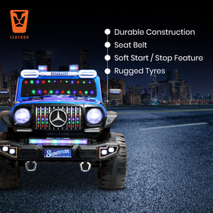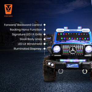 · Interactive Elements: Leotoon Licensed Superman SUV’s built-in Horn and Engine Sounds is to enhance the riding experience making it more engaging for kids. Dazzling LED Headlights, Dancing LED Lights on the Windshield, Multi-Coloured LED Lights on the Stylish Grill and Gorgeous LED Lights on the Stepney gives a realistic look and add Visibility. Built-in MP3 player with USB and AUX input allows kids to enjoy their favourite tunes while driving.