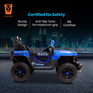 · Safety Features: Leotoon Licensed Superman SUV is equipped with a Seat Belt, Durable Construction, and a Soft Start/Stop Feature to ensure a Safe and Comfortable Ride. It is constructed with High-Quality, Non-Toxic materials, to withstand the rigours of outdoor play. Anti-Slip Tires ensure Maximum Grip on various surfaces. The Sturdy Design ensures Stability, while the Wide, Rugged Tires provide Excellent Traction on various surfaces. Leotoon Licensed Superman SUV is BIS Certified for complete Safety and Security of your baby.