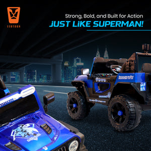 This rugged yet stylish ride-on vehicle brings the thrill of a real jeep to your child's outdoor playtime. Perfectly designed for little explorers, this mini off-road vehicle is packed with exciting features to bring outdoor fun to the next level. This Stylish and Realistic ride-on vehicle brings the excitement of driving a SUV to your child’s playtime. With its Sleek Design, Powerful Performance, and Premium Features, this ride-on SUV is perfect for young drivers who want to cruise in style. This Stylish and Powerful Battery-Powered Ride-On SUV is designed to provide hours of Fun and Excitement for children aged 3~10 Years. It is specially designed to keep your baby Safe and Comfortable while they play. It is Easy to Set Up offer more Safety, Balance, Support and Stability. Its Robust Frame is designed to handle bumps and rough terrain, providing stability and safety for young riders. Let your child experience the joy of driving their very own Leotoon Licensed Superman SUV with this feature-packed ride-on vehicle. Perfect for developing Motor Skills, Coordination, and fostering imaginative play. Whether it's a backyard adventure or a trip to the park, the Kids Licensed Superman Jeep lets your child explore their world in style. Combining fun, safety, and durability, this is the ultimate ride for budding adventurers.