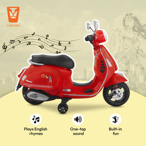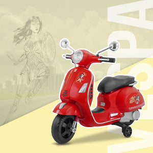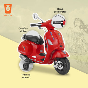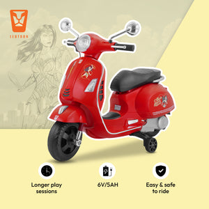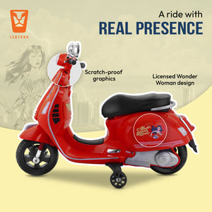 Leotoon Licensed Wonder Woman Scooter | 2B (6V/5AH) Battery | 2M (12V/18000 RPM) Motor | Hand Accelerator | USB/MP3 Interface | LED Light | English Rhymes & Music | BIS Certified | (Red) (3-7 Years)