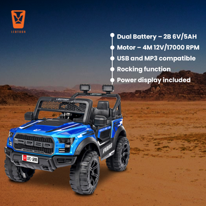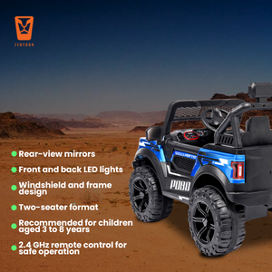 Leotoon POBO Kids SUV | 2B 6V/5AH | 4M 12V/17000 RPM | 2.4 GHz Remote | USB/MP3 | 2 Seater | Rocking Function | Dual Tone Headlights | Power Display | BIS Certified | (Metallic Blue) (3-8 Years)