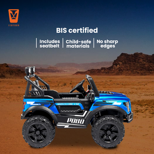 · Safety Features: Leotoon POBO Kids SUV is equipped with a Seat Belt, Durable Construction, and a Soft Start/Stop Feature to ensure a Safe and Comfortable Ride. It is constructed with High-Quality, Non-Toxic materials, to withstand the rigours of outdoor play. Anti-Slip Tires ensure Maximum Grip on various surfaces. The Sturdy Design ensures Stability, while the Wide, Rugged Tires provide Excellent Traction on various surfaces. Leotoon POBO Kids SUV is BIS Certified for complete Safety and Security of your baby.