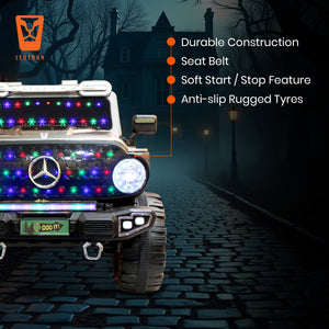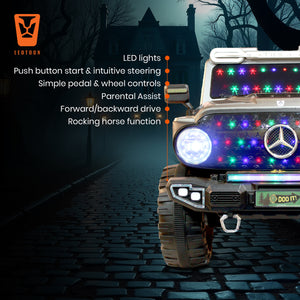 · Interactive Elements: Leotoon Scooby Doo SUV’s built-in Horn and Engine Sounds is to enhance the riding experience making it more engaging for kids. Dazzling LED Headlights, Dancing LED Lights on the Windshield, Multi-Coloured LED Lights on the Stylish Grill and Gorgeous LED Lights on the Stepney gives a realistic look and add Visibility. Built-in MP3 player with USB and AUX input allows kids to enjoy their favourite tunes while driving.