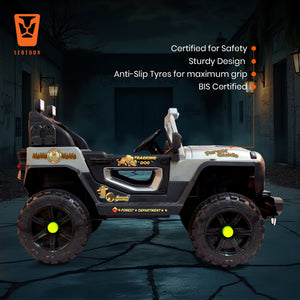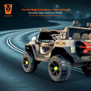· Sturdy Construction: Leotoon Scooby Doo SUV is built with High-Quality, Durable Materials, ensuring a long-lasting ride. It’s Robust Frame is designed to handle bumps and rough terrain, providing Stability and Safety for young riders. It is made with Premium Quality Materials with Smooth Edges so that you have to never worry about your baby's Safety. This Ride-on SUV features Realistic Details, including Scooby Doo Decals, a Signature LED Lit Grille, and Sleek Body Lines, LED Lit Windshield & Illuminated Stepney giving kids the thrill of driving a real luxury vehicle.