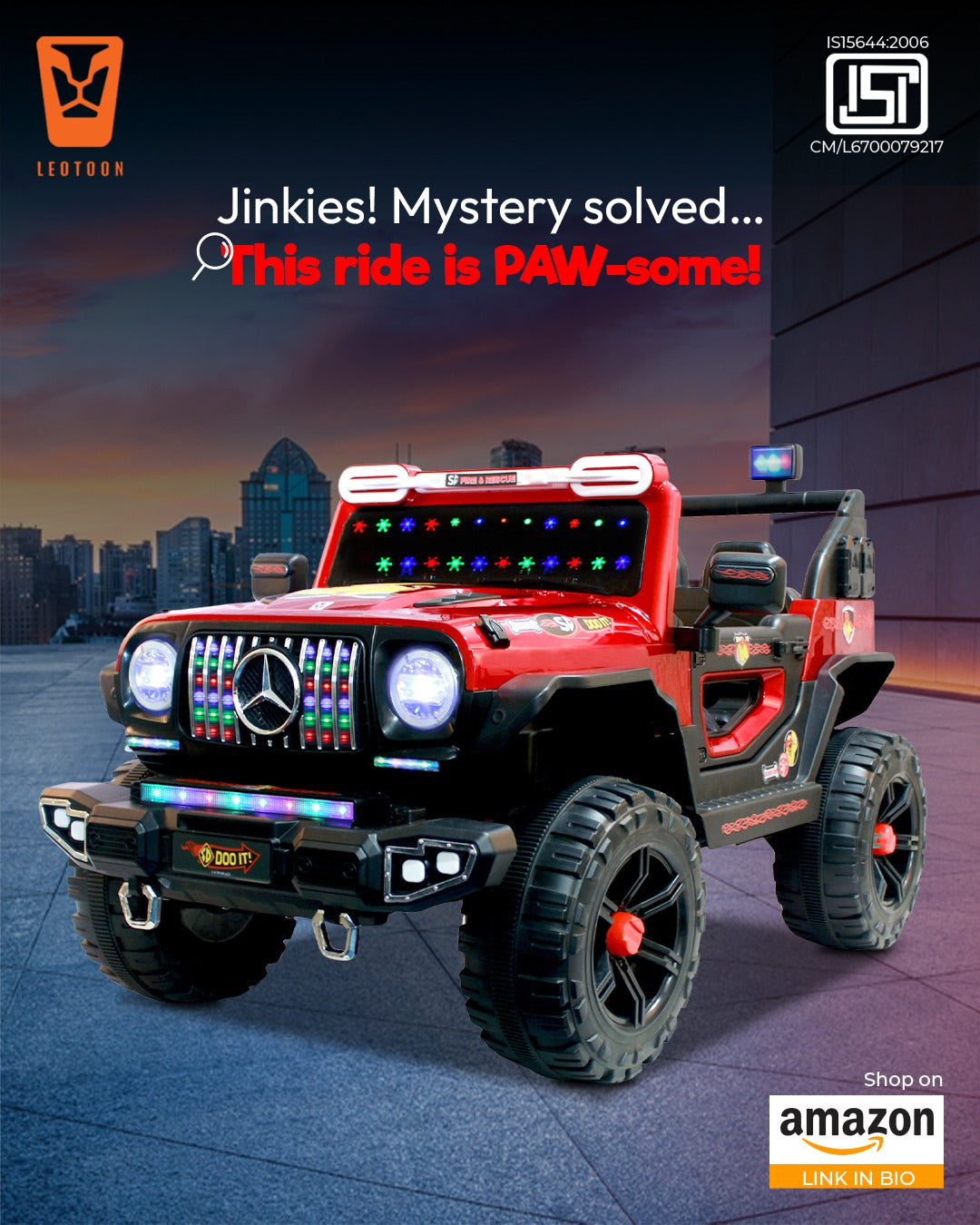 · Safety Features: Leotoon Scooby Doo SUV is equipped with a Seat Belt, Durable Construction, and a Soft Start/Stop Feature to ensure a Safe and Comfortable Ride. It is constructed with High-Quality, Non-Toxic materials, to withstand the rigours of outdoor play. Anti-Slip Tires ensure Maximum Grip on various surfaces. The Sturdy Design ensures Stability, while the Wide, Rugged Tires provide Excellent Traction on various surfaces. Leotoon Scooby Doo SUV is BIS Certified for complete Safety and Security of your baby.