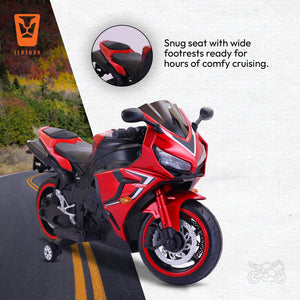 · Powerful Motor: Leotoon Velvortex Bike is equipped with a Powerful 12V/15000 RPM electric motor for Smooth and Steady Acceleration. Power Packed 12V/5AH VRLA Rechargeable Battery provides long-lasting power, allowing for extended playtime. With a top speed of 8 Km/Hr, it’s exciting yet safe for young riders.