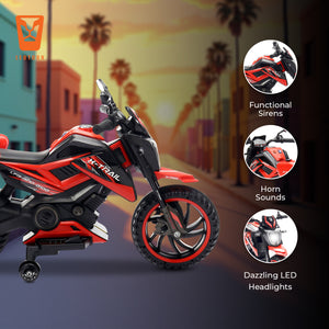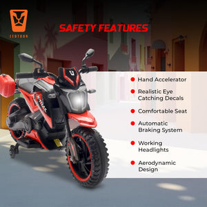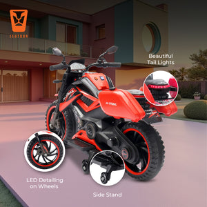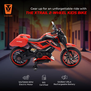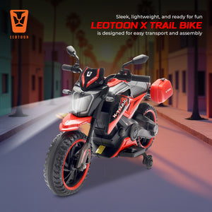 Unleash the adventure with the Leotoon X-Trail 2W Bike! This electric ride-on bike is designed to provide an exhilarating and realistic riding experience for young thrill-seekers, combining Safety, Style, and Fun. Leotoon X-Trail 2W Bike features a 12V/11000 RPM Powerful Motor that ensures Smooth Rides. Easy Controls make it simple for kids to operate. It is Easy to Set Up and has 2 sturdy Big Wheels along with attached Training Wheel for more Safety, Balance, Support and Stability. Its Robust Frame is designed to handle bumps and rough terrain, providing stability and safety for young riders. It combines Safety, Fun, and Realism, making it the perfect choice for young adventurers. Its Sturdy Build, Powerful Motor, and User-Friendly Design ensure that kids can enjoy hours of outdoor excitement while parents have peace of mind knowing their children are riding safely. The Leotoon X-Trail 2W Bike is the perfect gift for any young adventurer. This battery-operated bike combines rugged style with safe and exciting play. Whether cruising the backyard trails or exploring the neighbourhood, the Leotoon X-Trail 2W Bike offers endless fun and developmental benefits for your child.