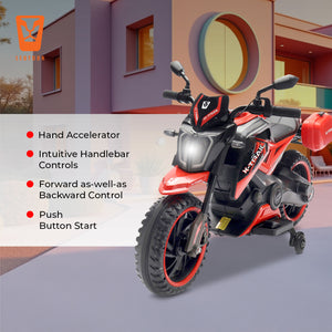 Leotoon X-Trail 2W Bike | Hand Accelerator | 12V/5AH Battery | 12V/11000 RPM Motor | USB/MP3 Interface | English Rhymes | Big Wheels | English Music | BIS Certified | (Red) (3-8 Years)