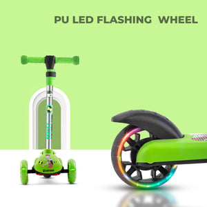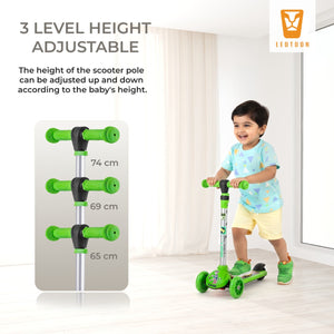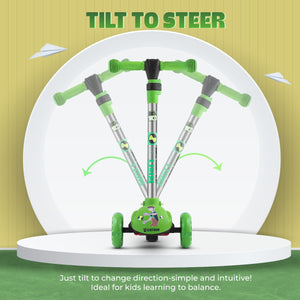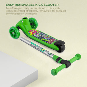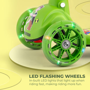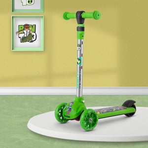 Leotoon Licensed BEN 10 Scooter | 3 Level Height | Aluminium Alloy | Lean To Steer | Rear Fender Brake | Anti-Slip Deck | 40 Kg Capacity | Quick-Folding | 3 LED Wheels | (Green/Black) (3-8 Years)